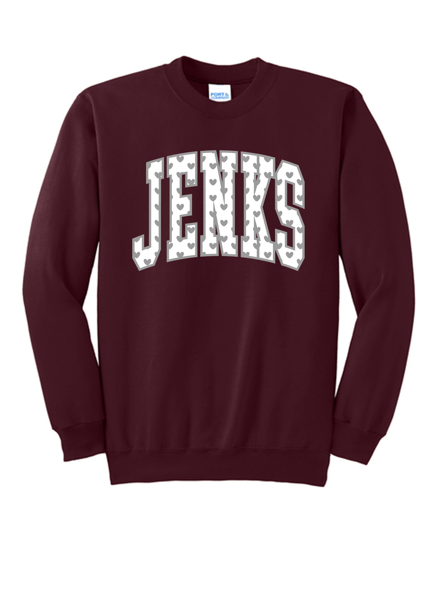 Jenks Heart Filled Crew Sweatshirt (2 Colors)(Youth-Adult)
